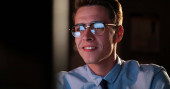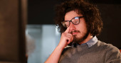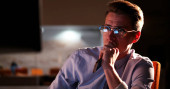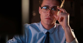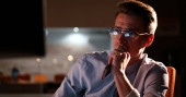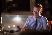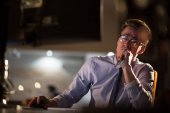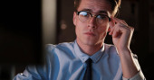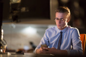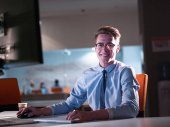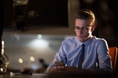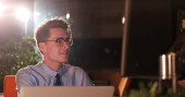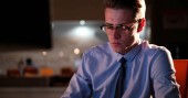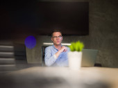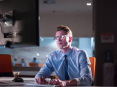 mężczyzna pracujący na komputerze w biurze ciemny