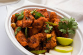 Zdjęcie "Kurczaka 65 - pikantne, smażone w głębokim tłuszczu Bar zakąska lub szybką przekąskę z Indii na patelni na białym tle, Selektywny fokus" może być wykorzystywane do celów osobistych i komercyjnych zgodnie z warunkami zakupionej licencji Royalty-free. Obraz jest dostępny do pobrania w jakości wysokiej rozdzielczości do 5760x3840.