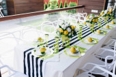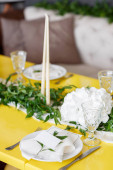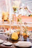 Świece i puchary na stole urządzone wesele. Selektywny fokus