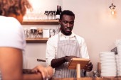 Zdjęcie "Barista menu do klientów " może być wykorzystywane do celów osobistych i komercyjnych zgodnie z warunkami zakupionej licencji Royalty-free. Obraz jest dostępny do pobrania w jakości wysokiej rozdzielczości do 5760x3840.