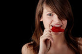 Zdjęcie "piękna młoda kobieta z czerwoną różą" może być wykorzystywane do celów osobistych i komercyjnych zgodnie z warunkami zakupionej licencji Royalty-free. Obraz jest dostępny do pobrania w jakości wysokiej rozdzielczości do 5760x3840.