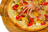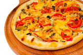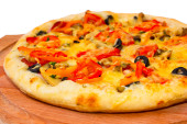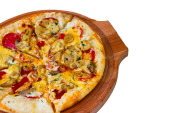 apetyczny pizza z serem na drewnianej tacy zbliżenie na biały bac
