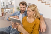 Zdjęcie "para przy użyciu cyfrowego tabletu" może być wykorzystywane do celów osobistych i komercyjnych zgodnie z warunkami zakupionej licencji Royalty-free. Obraz jest dostępny do pobrania w jakości wysokiej rozdzielczości do 5760x3840.