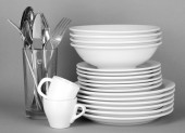 czysty biały dania na szarym tle