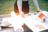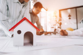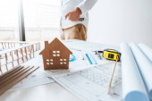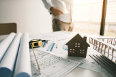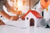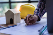 Inżynier szkicowanie projektu architektonicznego na planie, koncepcja inżynierska, koncepcja architektoniczna