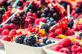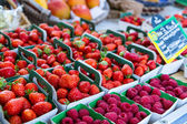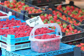 Maliny na farmie rynku w mieście. Owoców i warzyw na rynku rolników