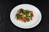 Zdjęcie "Świeże sałatki z rukola, sałata, pomidory cherry, ogórek, kalafior, papryka na podłoże drewniane. Widok z góry" może być wykorzystywane do celów osobistych i komercyjnych zgodnie z warunkami zakupionej licencji Royalty-free. Obraz jest dostępny do pobrania w jakości wysokiej rozdzielczości do 5760x3840.
