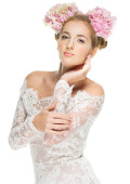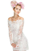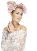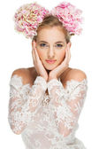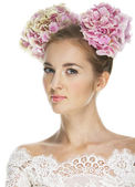 piękna blond dziewczyna z hortensji w jej włosy