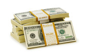 stos dolarów na białym tle