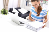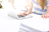 Zdjęcie "Kobieta z dokumenty na biurku z laptopa" może być wykorzystywane do celów osobistych i komercyjnych zgodnie z warunkami zakupionej licencji Royalty-free. Obraz jest dostępny do pobrania w jakości wysokiej rozdzielczości do 5760x3840.