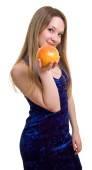 uśmiechnięte dziewczyny z pomarańczowy grejpfrutowy