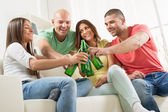 Przyjaciele dobrą zabawę, picie piwa razem w domu.