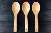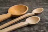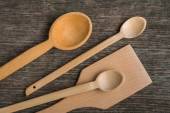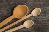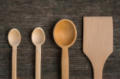 Ręcznie robione drewniane łyżki na płycie, narzędzia kuchenne