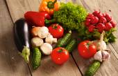 Świeże warzywa w płycie na trawie. Zdrowe jedzenie. Diety