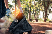 Dzieci zbieranie pusty z butelki z tworzyw sztucznych do worka bin