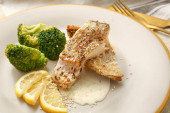 Cytryny chargrills przyprawione tymianek zioło z brokułami i chipsy