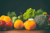 Warzywa na czarnym tle drewniane