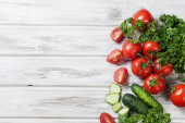 Wiśniowe pomidory na oddział, ogórek, natka pietruszki