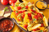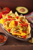 nachos, ładowane z jalapeno, ser i guacamole, salsa