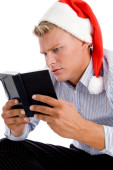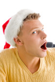 przystojny mężczyzna tele rozmówcy z zestawu słuchawkowego