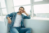 Zdjęcie "Facet jest siedzi na kanapie i myślenia" może być wykorzystywane do celów osobistych i komercyjnych zgodnie z warunkami zakupionej licencji Royalty-free. Obraz jest dostępny do pobrania w jakości wysokiej rozdzielczości do 5760x3840.