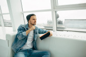 Zdjęcie "Facet jest siedzi na kanapie i myślenia" może być wykorzystywane do celów osobistych i komercyjnych zgodnie z warunkami zakupionej licencji Royalty-free. Obraz jest dostępny do pobrania w jakości wysokiej rozdzielczości do 5760x3840.