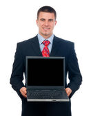 Zdjęcie "Uśmiechnięty młody biznesmen z laptopem" może być wykorzystywane do celów osobistych i komercyjnych zgodnie z warunkami zakupionej licencji Royalty-free. Obraz jest dostępny do pobrania w jakości wysokiej rozdzielczości do 5760x3840.