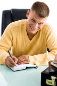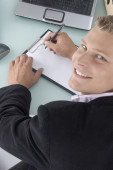 Zdjęcie "biznesmen pisania na podkładce" może być wykorzystywane do celów osobistych i komercyjnych zgodnie z warunkami zakupionej licencji Royalty-free. Obraz jest dostępny do pobrania w jakości wysokiej rozdzielczości do 5760x3840.