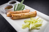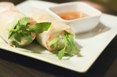 Zdjęcie "Bułki, krewetki krewetki cała walcowane z liści bazylii w otoka chrupki ryż, smażone & serwowane z naszych pikantny domowe słodkie & kwaśny sos" może być wykorzystywane do celów osobistych i komercyjnych zgodnie z warunkami zakupionej licencji Royalty-free. Obraz jest dostępny do pobrania w jakości wysokiej rozdzielczości do 5760x3840.