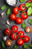 Zdjęcie "Świeże pomidory na czarnym tle łupek." może być wykorzystywane do celów osobistych i komercyjnych zgodnie z warunkami zakupionej licencji Royalty-free. Obraz jest dostępny do pobrania w jakości wysokiej rozdzielczości do 5760x3840.
