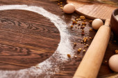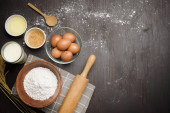 Zdjęcie "Pieczenia ciasto czekoladowe w wiejskich lub rustykalnej kuchni. Składniki Przepis ciasta na stół z drewna vintage" może być wykorzystywane do celów osobistych i komercyjnych zgodnie z warunkami zakupionej licencji Royalty-free. Obraz jest dostępny do pobrania w jakości wysokiej rozdzielczości do 5760x3840.