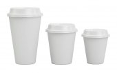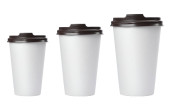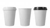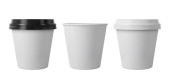 Pusty papier filiżanka kawy izolat na białym tle makieta