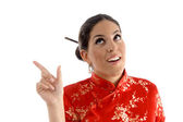 Zdjęcie "bardzo młoda kobieta, wskazując na bok" może być wykorzystywane do celów osobistych i komercyjnych zgodnie z warunkami zakupionej licencji Royalty-free. Obraz jest dostępny do pobrania w jakości wysokiej rozdzielczości do 5760x3840.