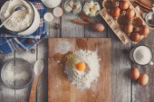 Zdjęcie "Pieczenia składniki na tle rustykalnym drewna" może być wykorzystywane do celów osobistych i komercyjnych zgodnie z warunkami zakupionej licencji Royalty-free. Obraz jest dostępny do pobrania w jakości wysokiej rozdzielczości do 5760x3840.
