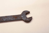 Zardzewiały, stary warsztat klucze. Hydrauliczne klucze na stół czarny w w