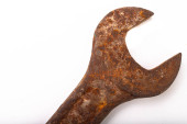 Zardzewiały, stary warsztat klucze. Hydrauliczne klucze na stół czarny w w