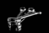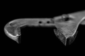 Zardzewiały, stary warsztat klucze. Hydrauliczne klucze na stół czarny w w