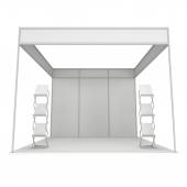 3D renderowania szary wystawa z dwóch plakatów i biurko