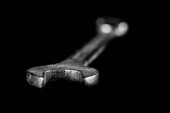 Zardzewiały, stary warsztat klucze. Hydrauliczne klucze na stół czarny w w