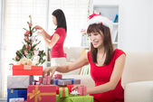 azjatyckie dziewczyny podczas świąt Bożego Narodzenia z jej prezenty