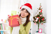 azjatyckie dziewczyny podczas świąt Bożego Narodzenia z jej prezenty
