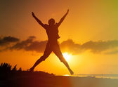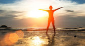 sylwetka młoda dziewczyna, skoki z morza zachód słońca
