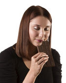 Młoda piękna kobieta z blok czekolady