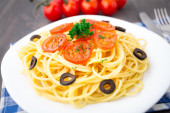 Zdjęcie "spaghetti z świeżych pomidorów, oliwek i mięty" może być wykorzystywane do celów osobistych i komercyjnych zgodnie z warunkami zakupionej licencji Royalty-free. Obraz jest dostępny do pobrania w jakości wysokiej rozdzielczości do 5760x3840.