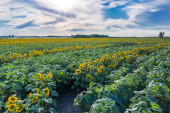 Zdjęcie "Pola z kwitnących słoneczników przeciw błękitne niebo" może być wykorzystywane do celów osobistych i komercyjnych zgodnie z warunkami zakupionej licencji Royalty-free. Obraz jest dostępny do pobrania w jakości wysokiej rozdzielczości do 5760x3840.