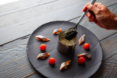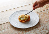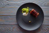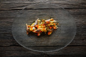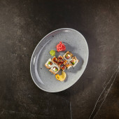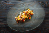 Grillowany węgorz wędzony z zielonego jabłka i owoce cytrusowe