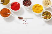 Zdjęcie "Różnych przypraw w miski na białym. " może być wykorzystywane do celów osobistych i komercyjnych zgodnie z warunkami zakupionej licencji Royalty-free. Obraz jest dostępny do pobrania w jakości wysokiej rozdzielczości do 5760x3840.