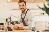 Zdjęcie "Barista stojący w kasie" może być wykorzystywane do celów osobistych i komercyjnych zgodnie z warunkami zakupionej licencji Royalty-free. Obraz jest dostępny do pobrania w jakości wysokiej rozdzielczości do 5760x3840.