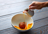 śmietana kremowa marchewka malowane na misce biały
