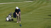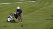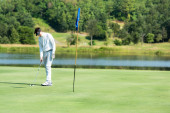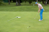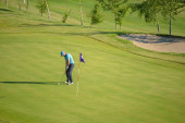 Golfistów hit zamiatanie pole golfowe w lecie. Gra w golfa
